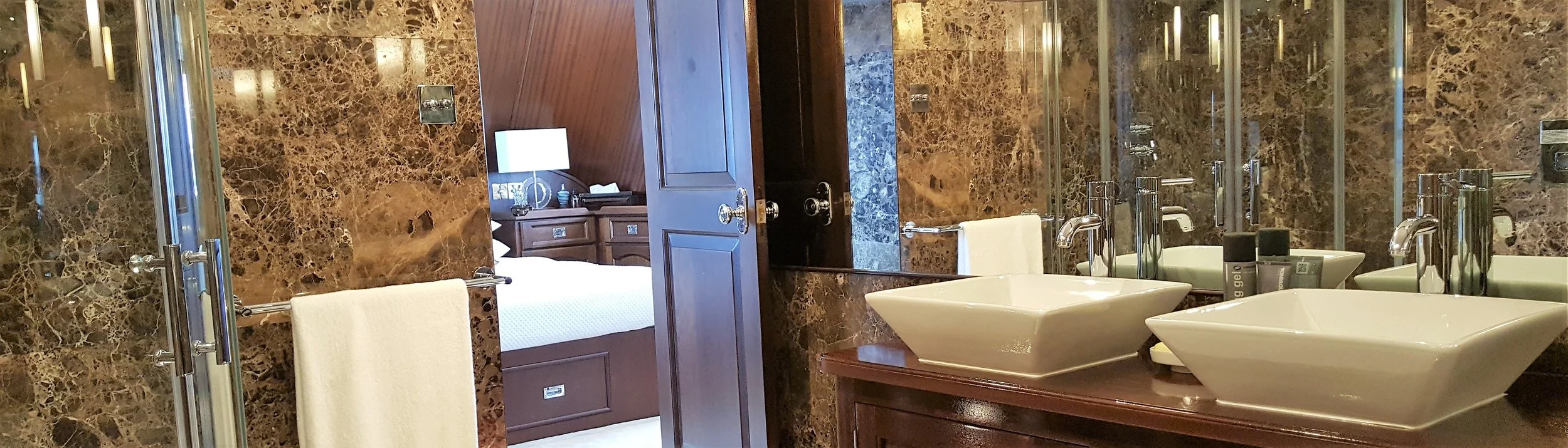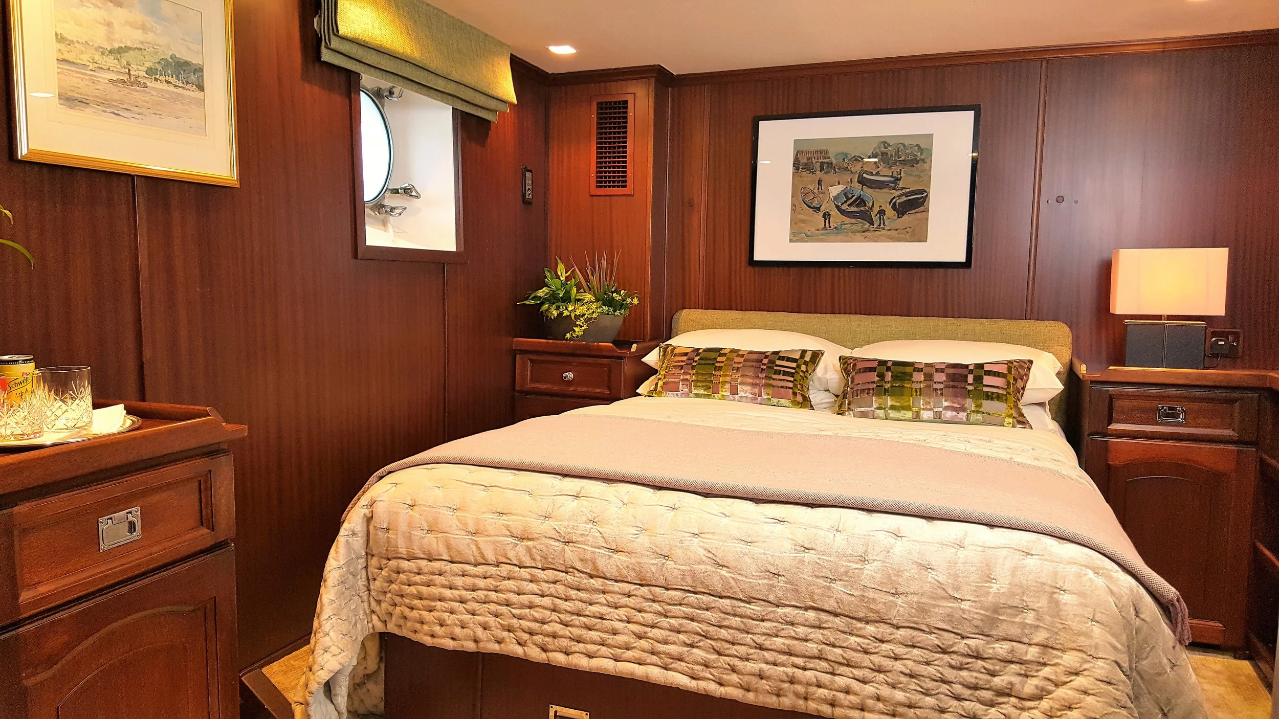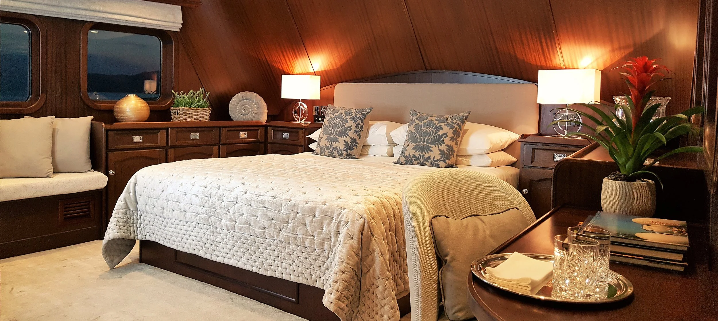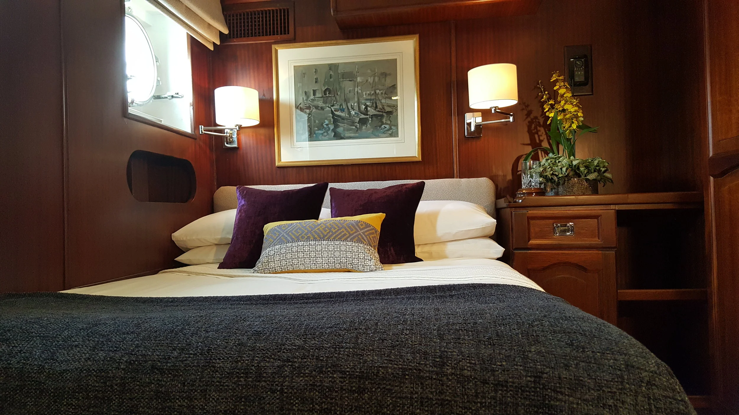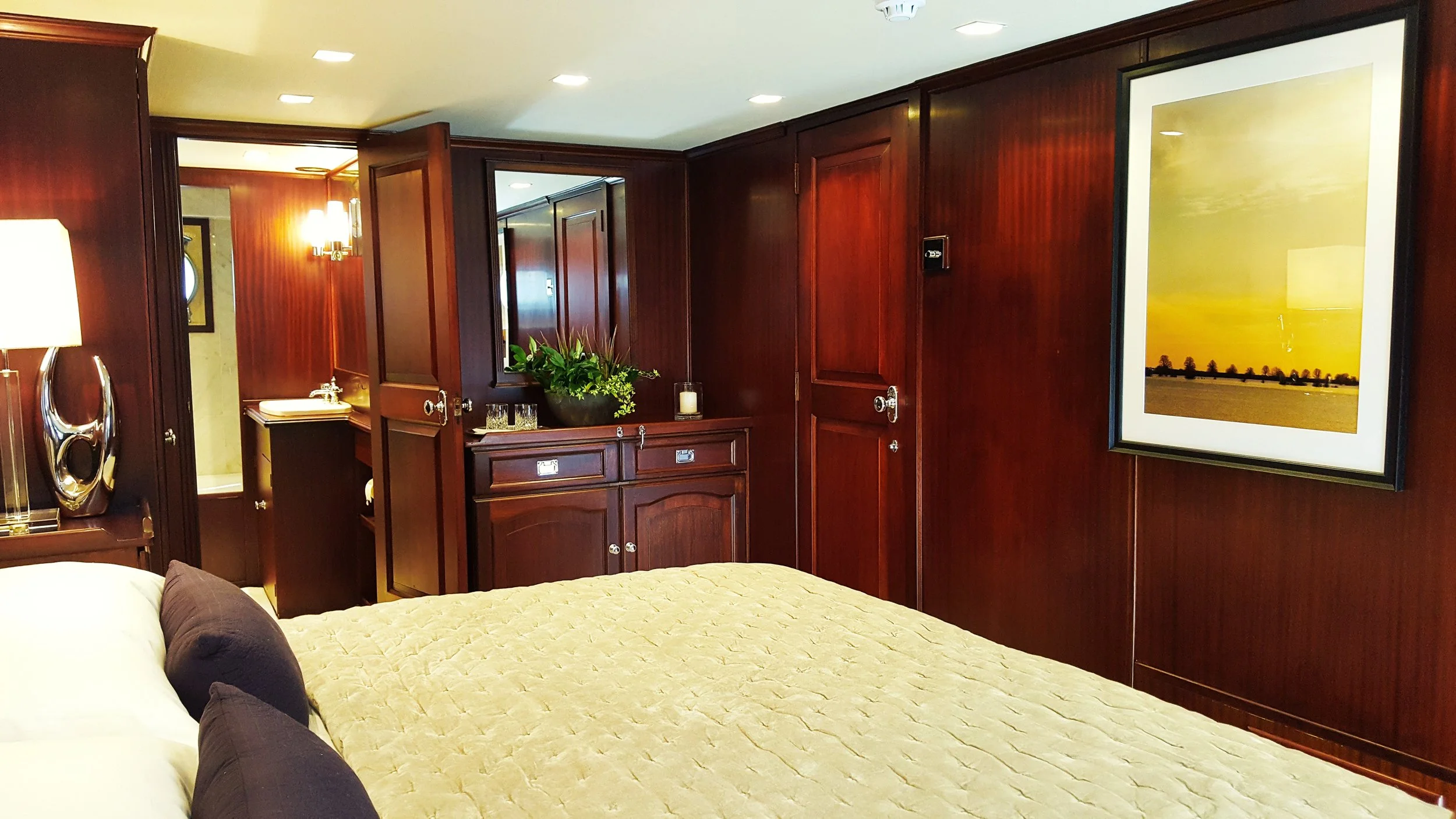 Situated on the main deck, enjoying natural light from the large windows on both sides of the cabin, the spacious master state room offers a high standard of comfort, including entertainment system and internet. What could be better, than enjoying a panoramic view of the ocean whilst sipping your morning coffee in bed? A luxury marble fitted bathroom provides a separate shower as well as a relaxing jacuzzi bath.
